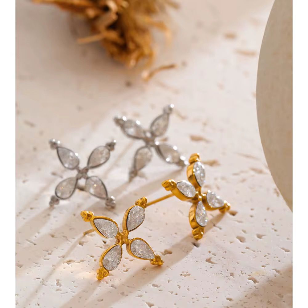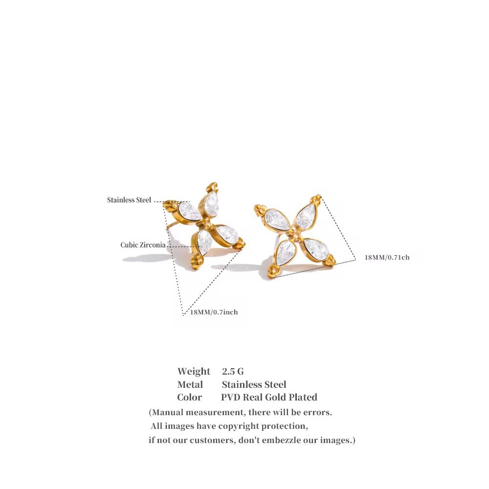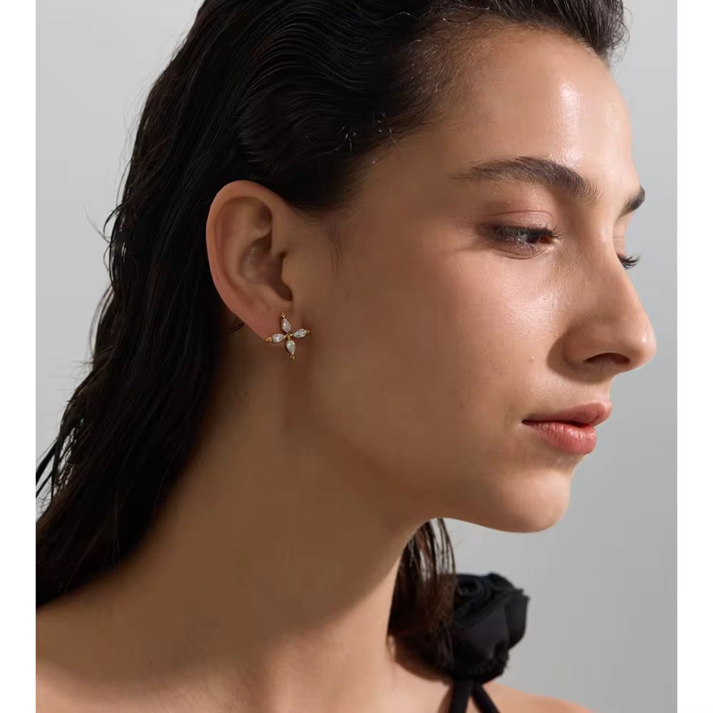 The Heirloom Petal Earrings are designed with delicate, petal-shaped zircon stones that reflect light beautifully from every angle.