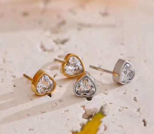 Add a touch of timeless charm to your everyday look with our Sweetheart Sparkle Studs. Crafted in 18K gold-plated stainless steel and featuring heart-shaped cubic zirconia, these dainty earrings blend elegance with everyday ease. Waterproof, tarnish-free, and hypoallergenic — made for sensitive ears and made to last.